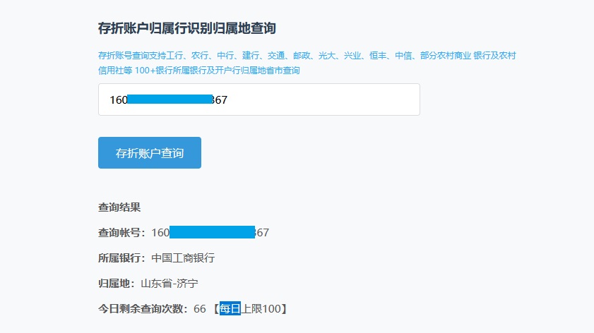 本系统查询收费 存折账号可以查询出该账号的所属银行,部分银行支持开户行归属地省市查询。 查询结果并非唯一银行,本系统只为缩小查询所属银行范围,查询结果可能和实际结果并不相符,查询结果仅供参考。
