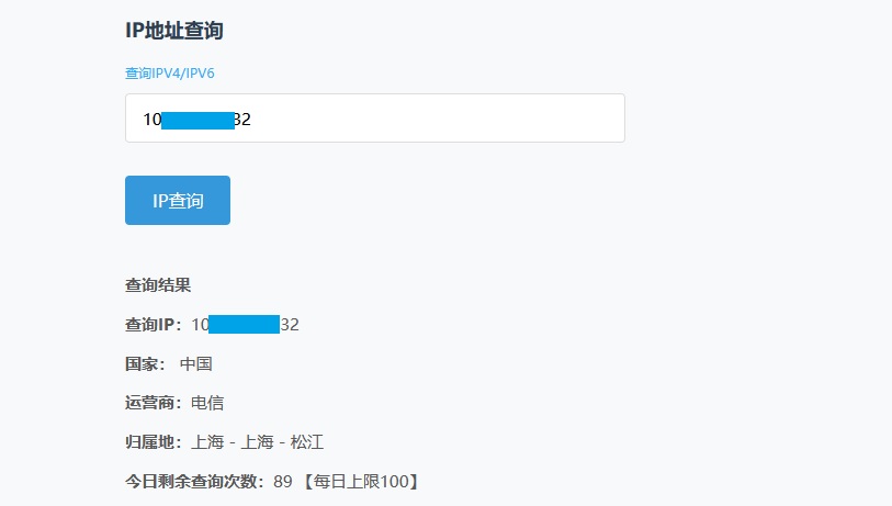 IP可查询运营商、归属地省市,查询IP支持IPV4和IPV6格式。
